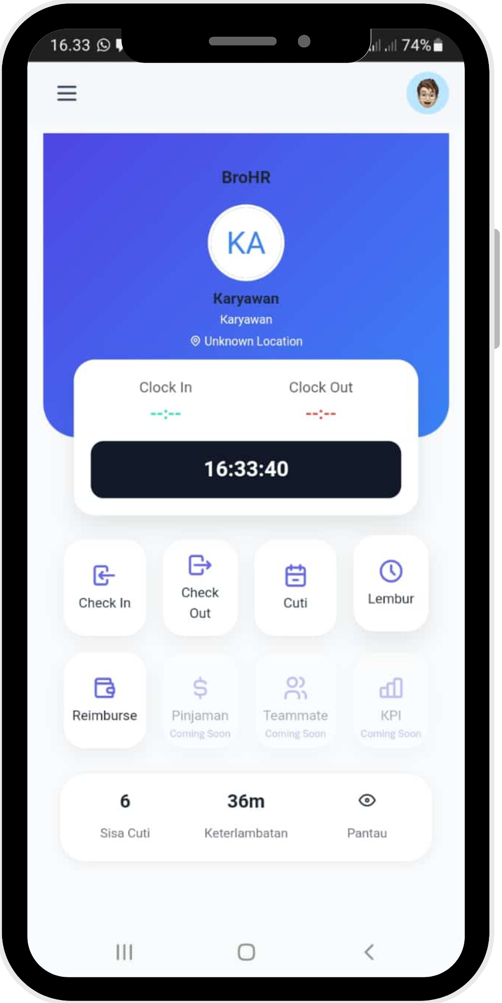 BroHR adalah aplikasi HRIS terbaik untuk absensi dan payroll karyawan yang dirancang khusus untuk memudahkan tim HR dalam mengelola data karyawan secara terpusat. Dengan fitur-fitur lengkap seperti manajemen cuti, jadwal kerja, slip gaji otomatis, hingga Employee Self Service (ESS), BroHR membantu perusahaan meningkatkan efisiensi dan akurasi pengelolaan SDM. Sekali beli, tanpa biaya langganan bulanan, BroHR adalah solusi HR modern untuk bisnis Anda.